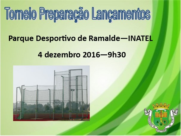 Dia 4 de Dezembro realiza-se um torneio de preparação de lançamentos, no Parque Desportivo de Ramalde, Inatel, no Porto. As provas iniciam-se ás 9h30. Os atletas iniciados estão autorizados a participar no escalão de juvenis, com o engenho deste escalão, nas provas de lançamento do Martelo e Disco.
