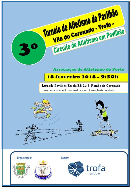 No domingo, dia 18 pelas 9h30 no Pavilhão da Escola EB 2,3 de S. Romão do Coronado disputa-se o 3º Torneio de atletismo em pavilhão para atletas benjmamins A e B e infantis.