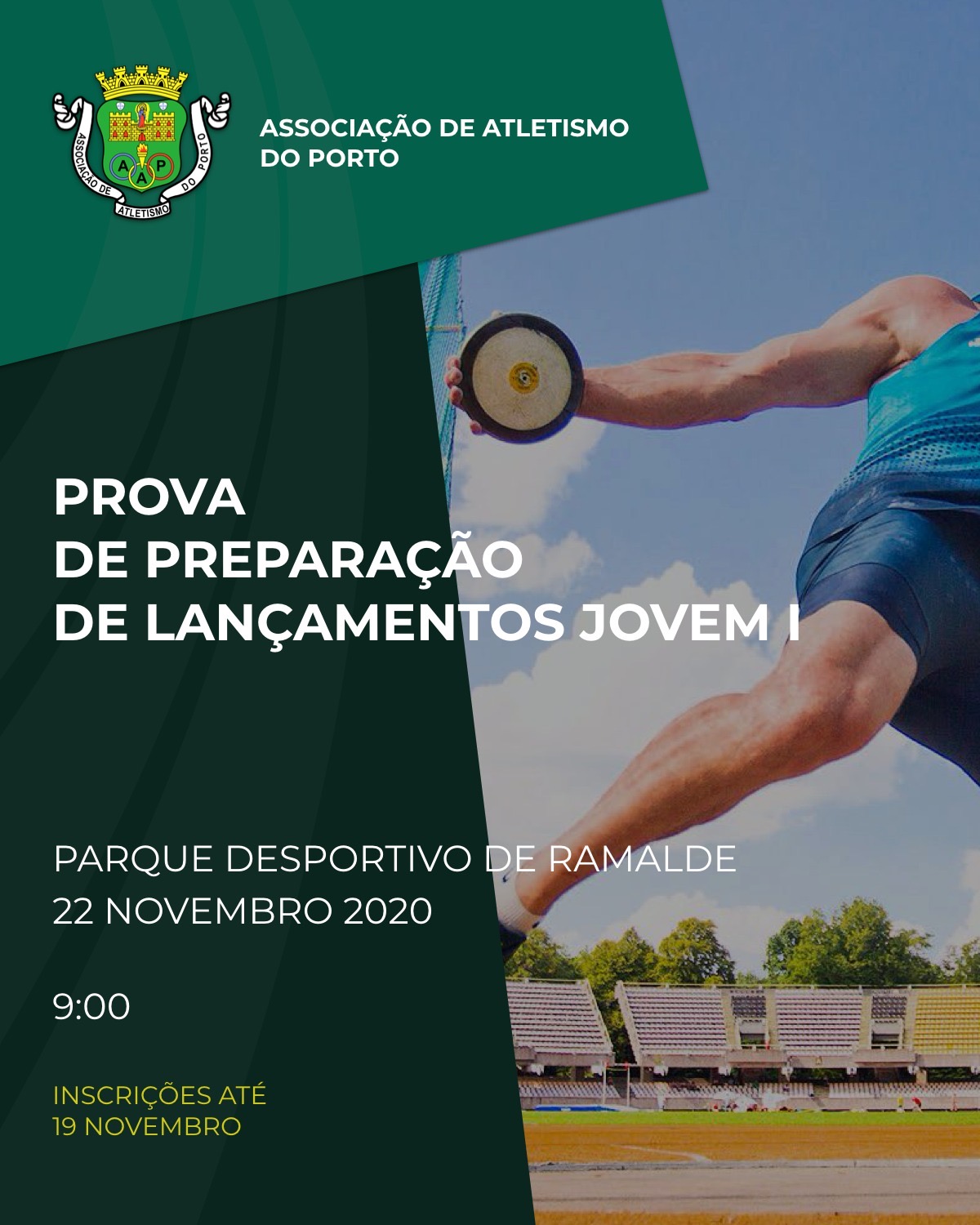 INSCRIÇÕES: Até ao dia 19 de Novembro de 2020 (quinta-feira).